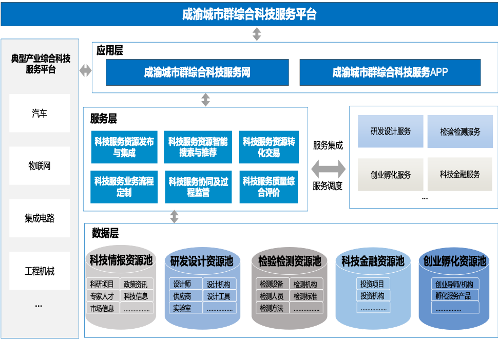 科技服务线上平台以突出浏览量、撮合交易量为设计出发点,着重从平台的提档升级、资源的整合突破、平台的特色凝练和维护更新等多个方面召开研发工作。现在平台的主要服务功能已经基本开发完成,主要包括“科技服务资源快速发布与集成管理、科技服务智能搜索与推荐、科技服务资源转化交易、科技服务业务流程定制、科技服务协同与过程管控、科技服务资源质量综合评价”等6个功能系统。初步实现科技淘宝、科技总包分包、科技众包、科技服务激励、基于大数据的科技金融等5类综合科技服务模式的线上线下联通。并在重庆高新区、壁山高新区、四川泸州高新区等成渝多个高新区得到验证和应用推广。
