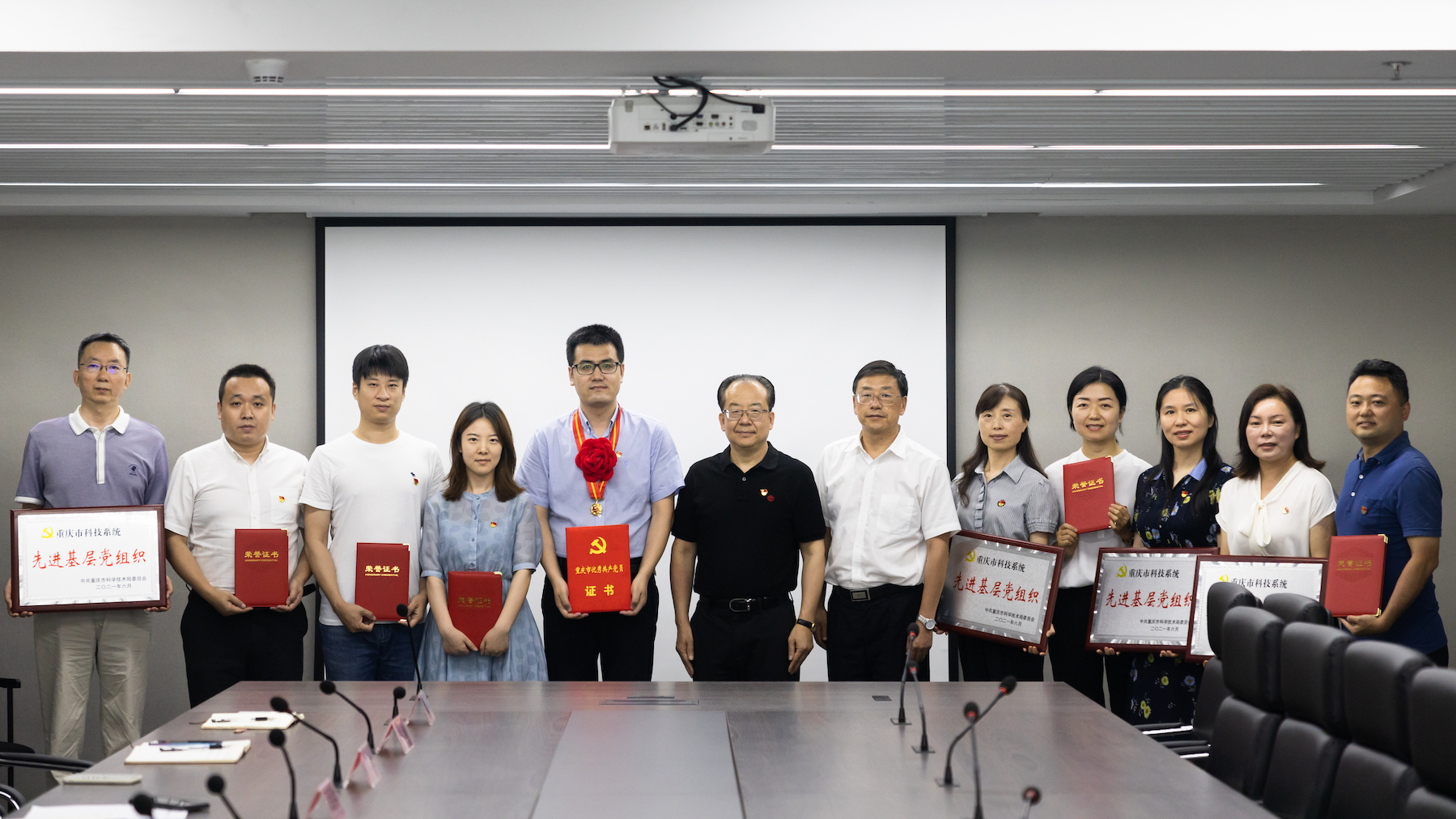 7月7日,凯发k8官网书记何平亲自主持颁奖仪式,与凯发k8官网副书记、院长梁震一起,为凯发k8官网取得重庆市和市科技系统“两优一先”表彰但尚未领奖的优秀个人、先进集体代表等11名同志,集中颁发了奖章、奖状。