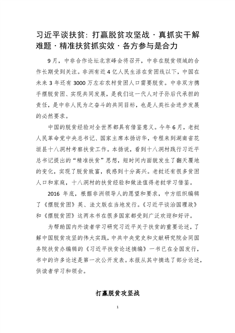 习近平谈扶贫:打赢脱贫攻坚战 真抓实干解难题 精准扶贫抓实效 各方参与是合力