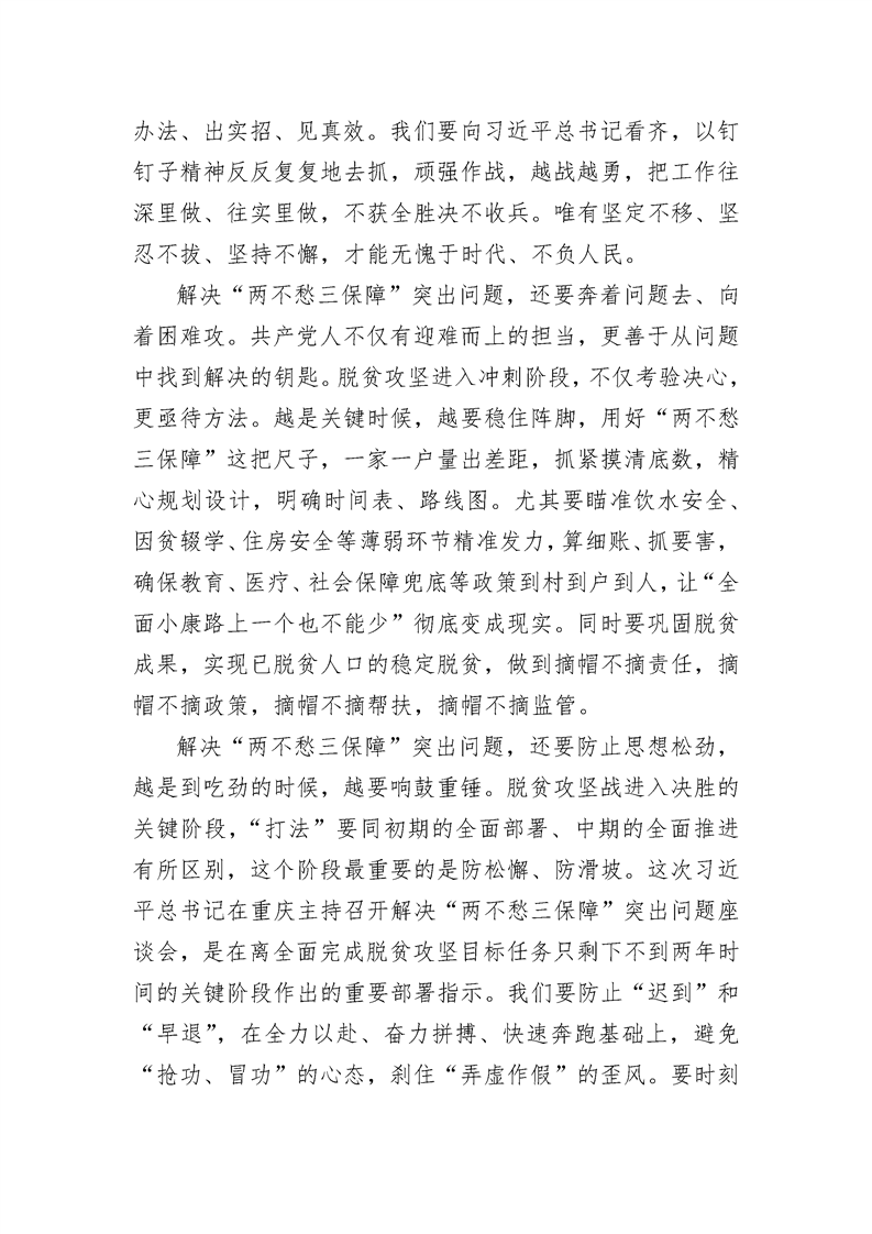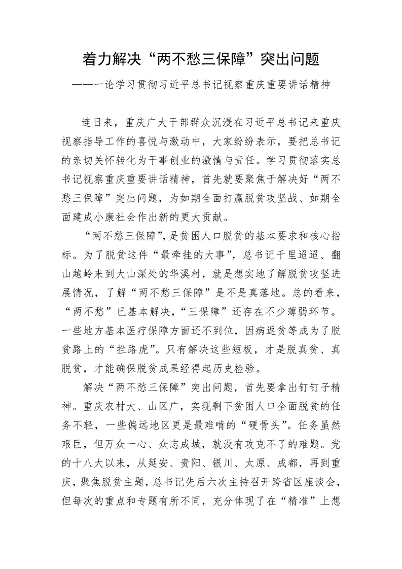 着力解决“两不愁三保障”突出问题——一论学习贯彻习近平总书记视察重庆重要讲话精神